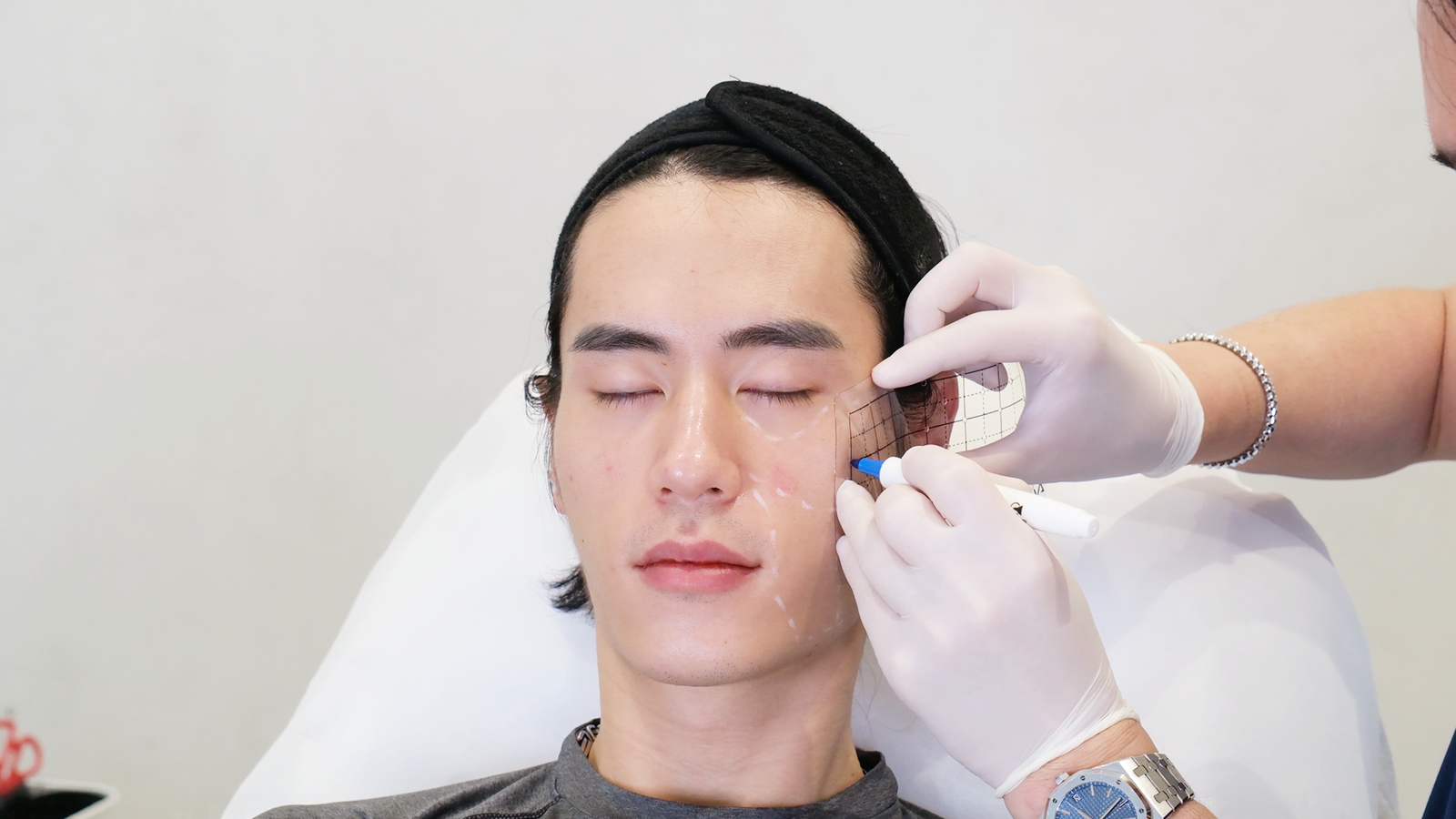 Image of the doctor planning treatment using the Facial Mapping & Precision Marking technique